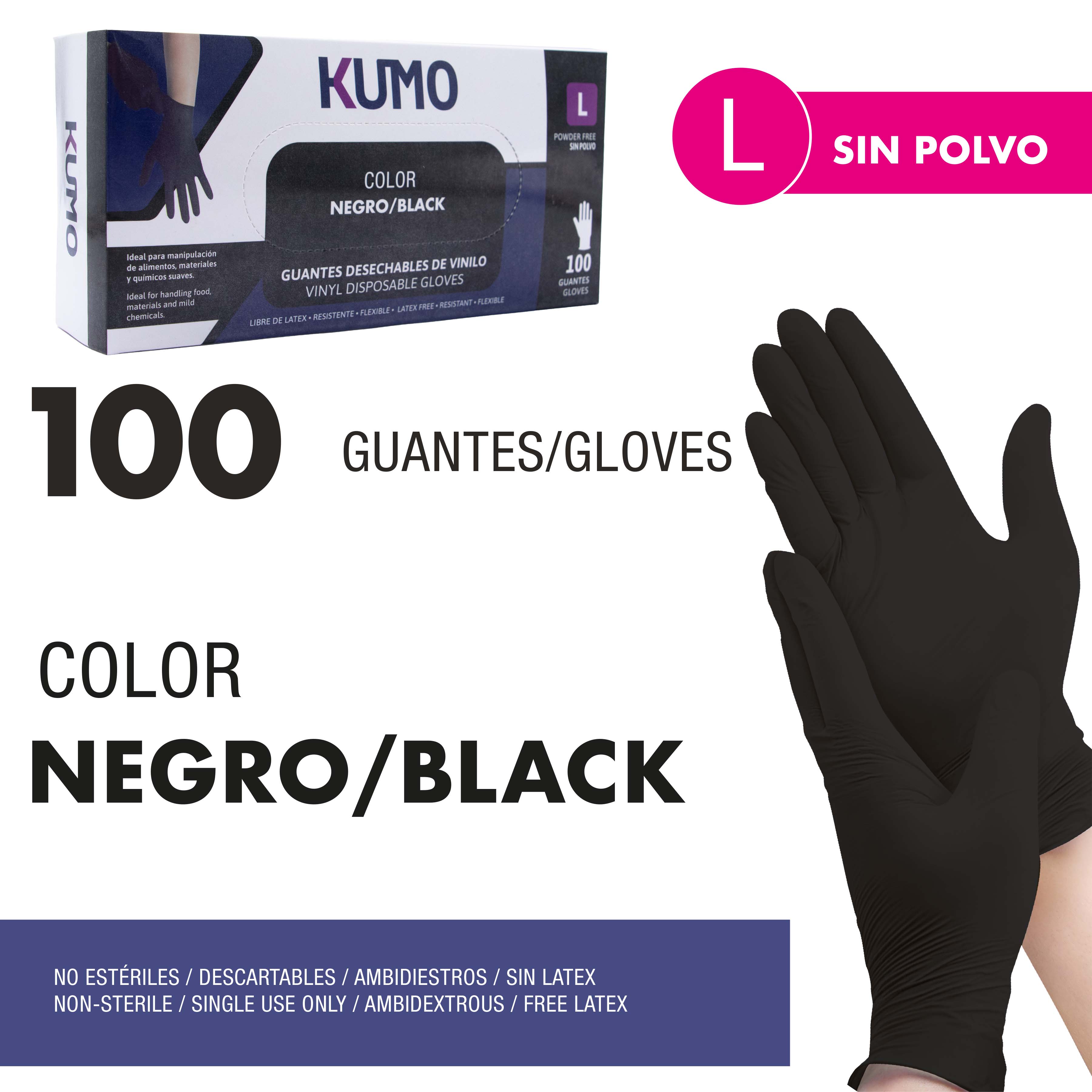 Guantes Desechables de Vinilo 100pcs Tamaño (L) para Cocina EV-NT-L-BK Nitrilo.