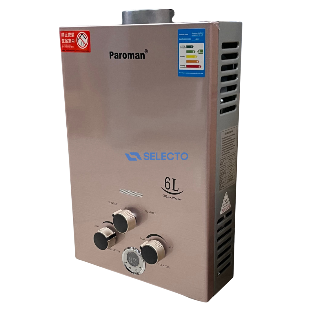 Calentador de Agua a Gas con Encendido de Batería "D" 6 Litros Paroman JSD12-6L