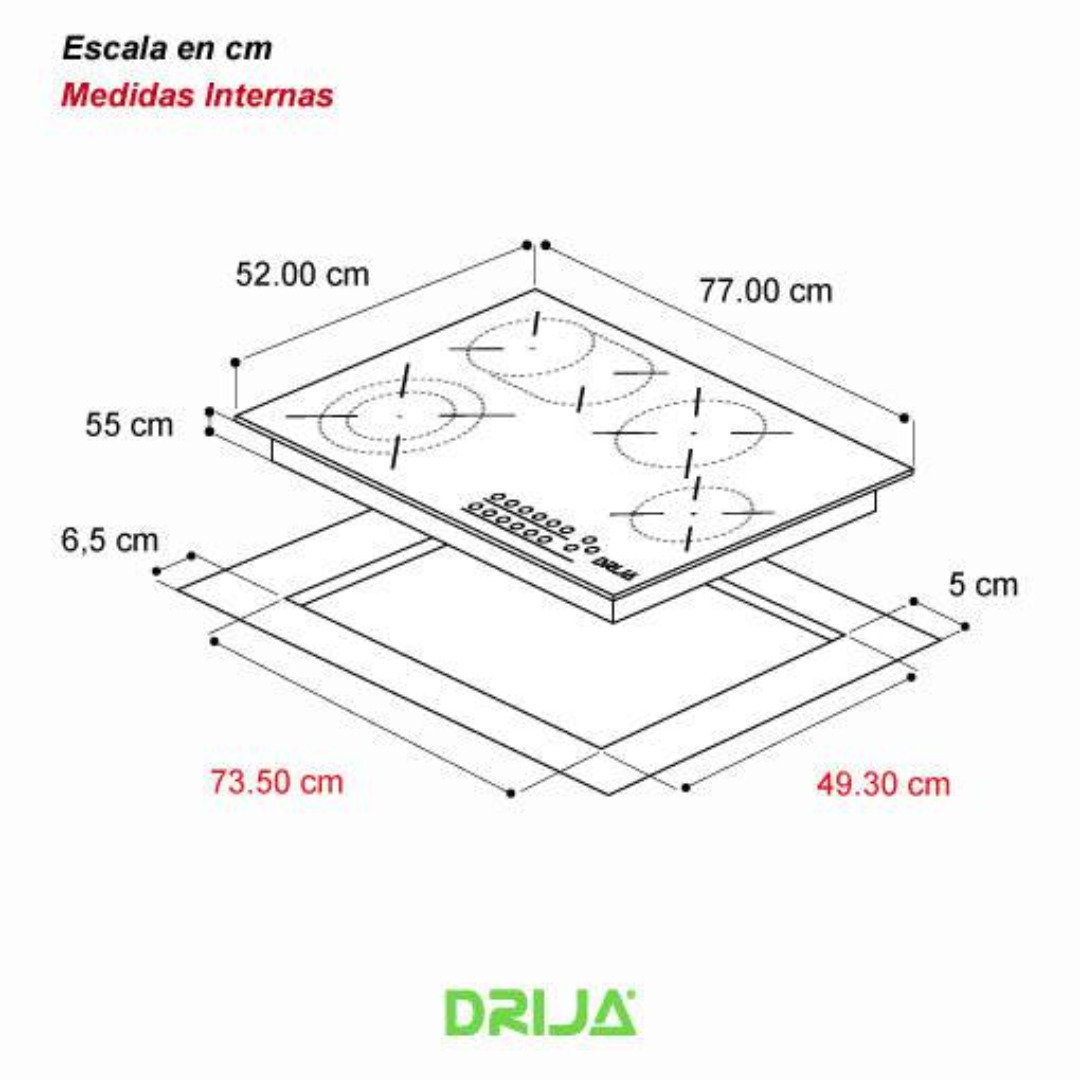 Estufa Empotrable de 4 Quemadores Vitrocerámica Negro BERLIN 76 ELÉCTRICO DRIJA