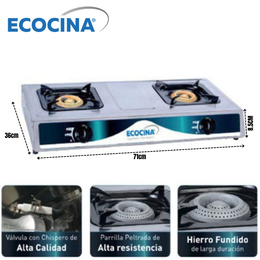 Estufa de Mesa de Acero Inoxidable de 2 Quemadores (ECOCINA) QH-A2