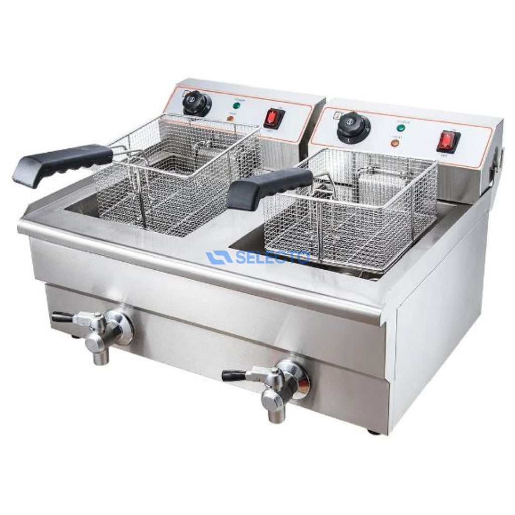 Freidora Eléctrica 110V Doble de 10 Litros + 10 Litros con Drenaje HEF-102V