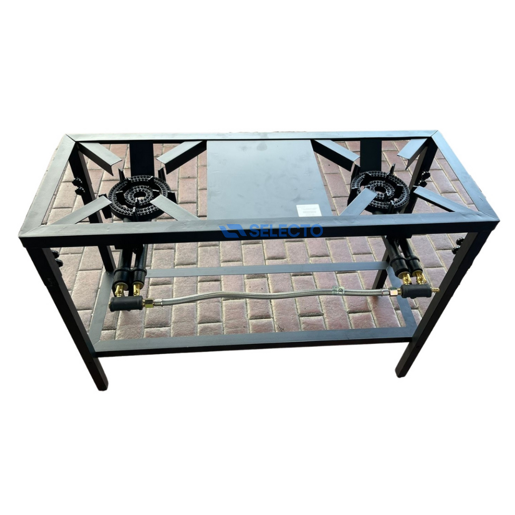 Estufa de Hierro Industrial con Patas 2 Quemadores de 2 Llaves a Gas STB-20-9-2L