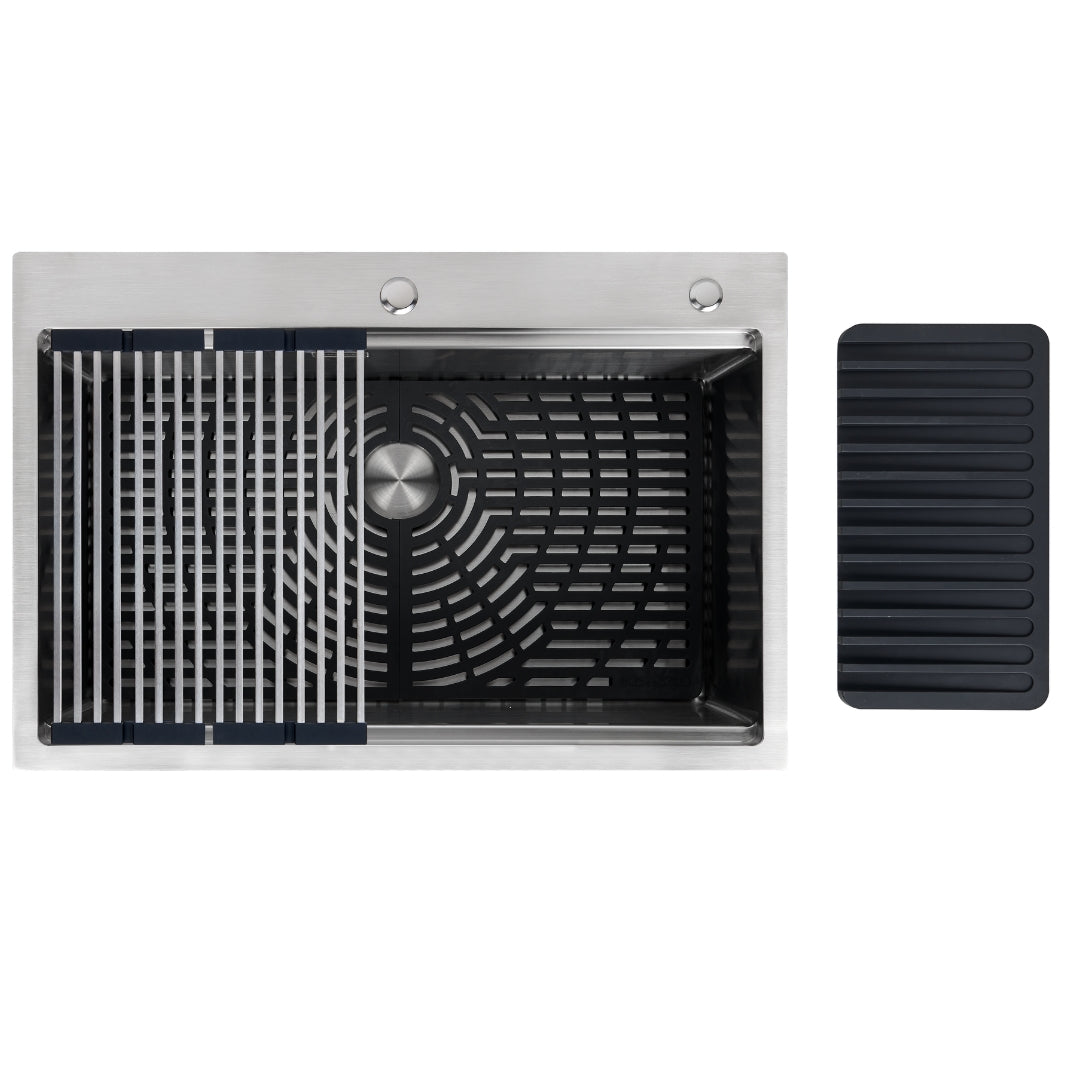 Fregador Sobre Bajo Tope + Grifo Toledo de Acero Inoxidable Negro Lugano BS Gasco