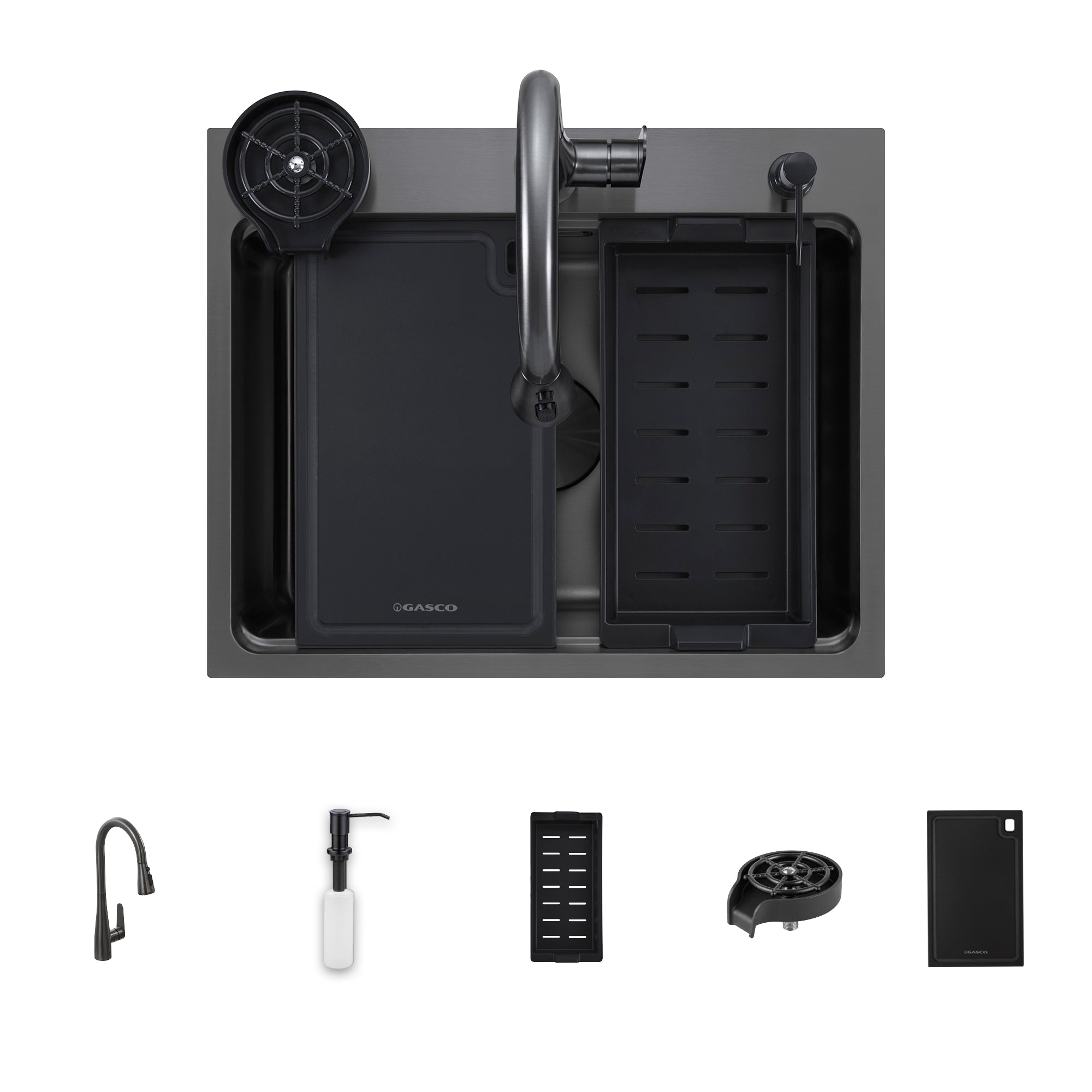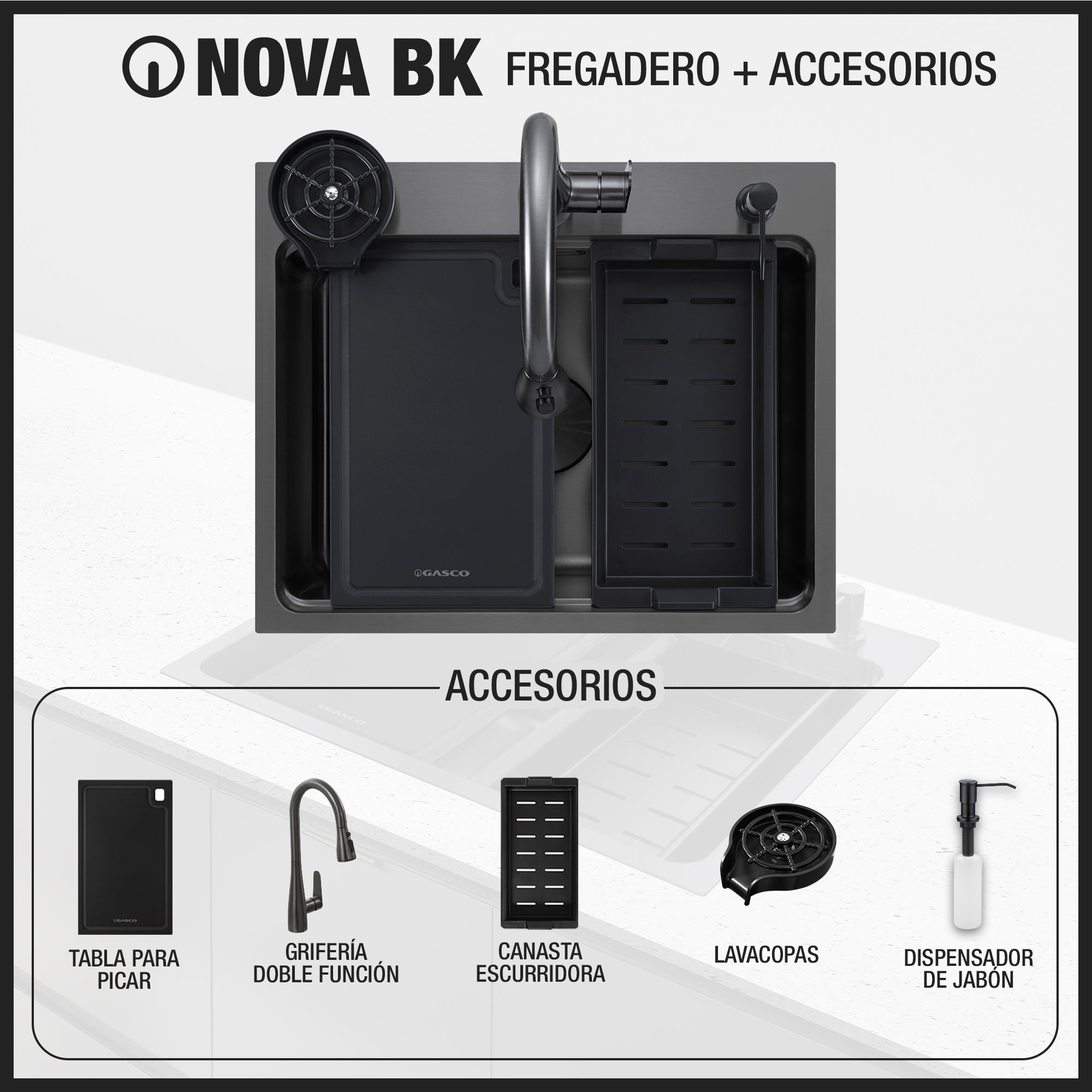 Kit Fregador + Grifo de Acero Inoxidable Negro 304 Nova BK Gasco