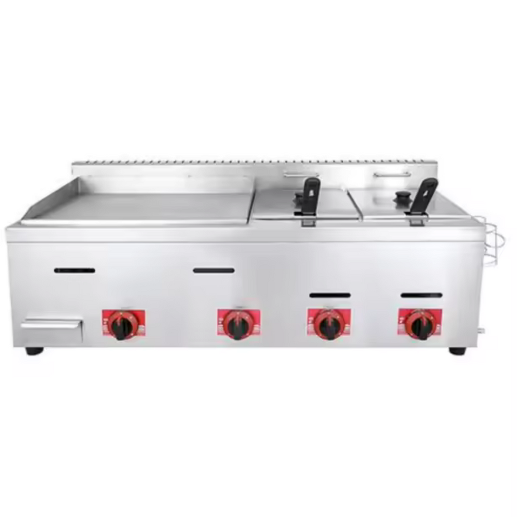 Equipo 2en1 a Gas de Acero Inoxidable con Plancha y Doble Freidora HGG-780