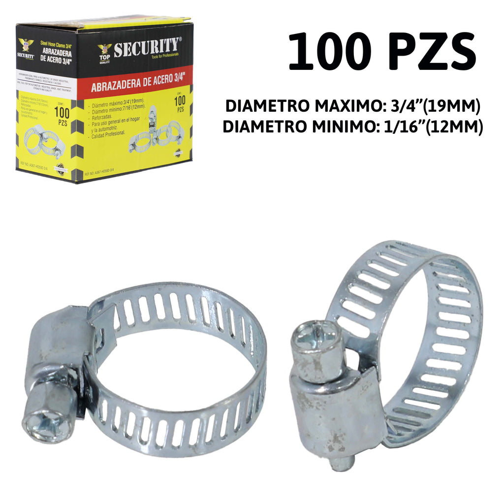 Cajeta de 100UND Abrazaderas o Anillo de Gas de 1/16" a 3/4" Security A367-HD592-3-4
