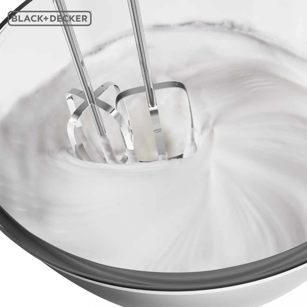 La Batidora vertical y manual de Black + Decker es ideal para preparar postres y deliciosos platillos en casa 5 velocidades para realizar diferentes mezclas Motor de 250 Watts de Potencia para elaborar mezclas rápidas Botón de expulsión para retirar la batidora de la base Incluye: 2 Batidores de alambre 2 Ganchos para masa, Recipiente de vidrio, Recipiente de plástico