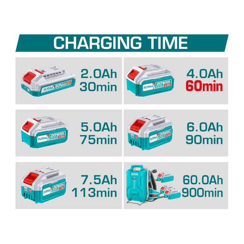 Cargador de batería 20V con 6 puertos. Corriente 4A. |
