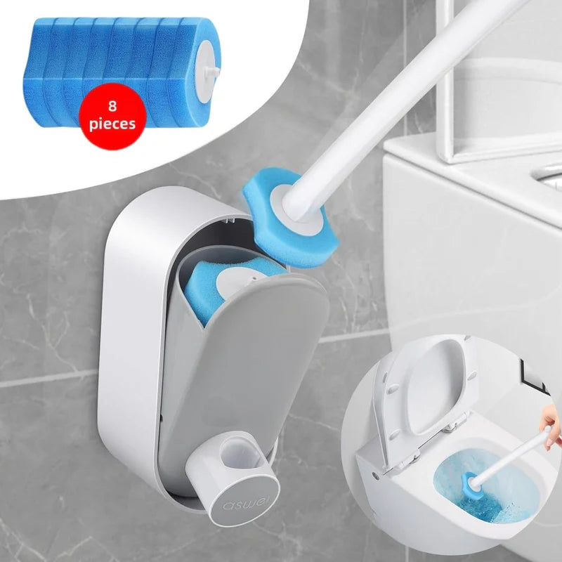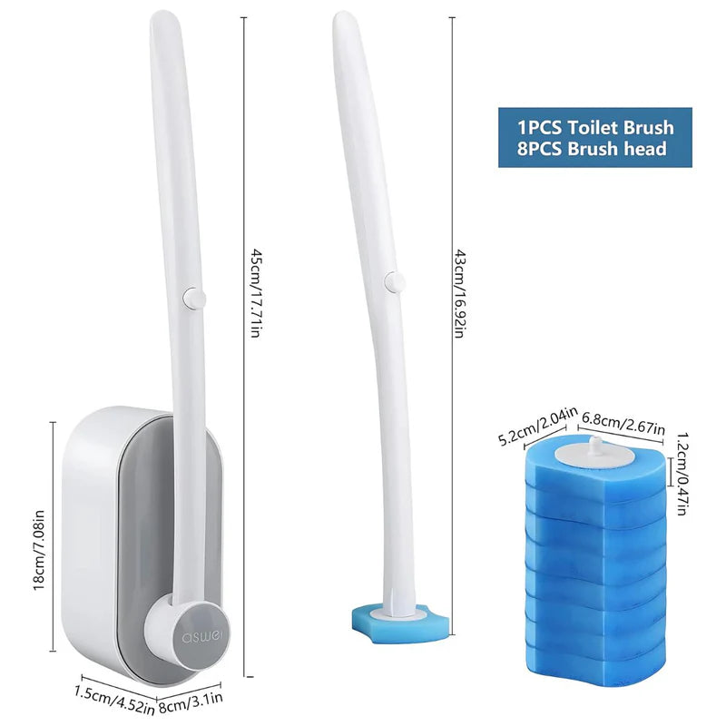 Cepillo de Inodoro con Cabezales Desechables y base de Pared. Incluye 8 Cabezales de repuesto. Limpieza de servicio retrete.