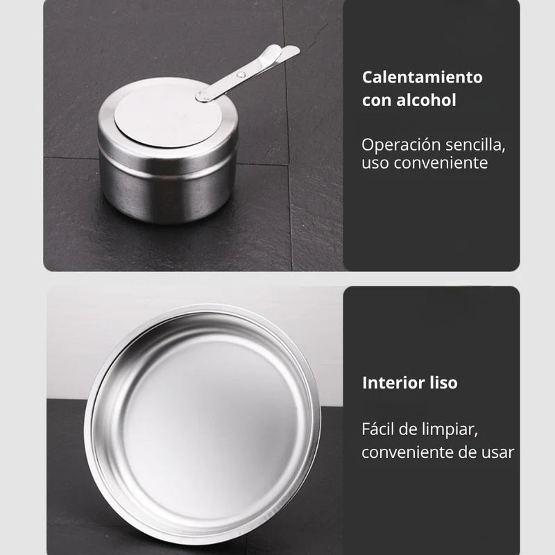 - Mantiene los alimentos calientes por más tiempo gracias a su compartimiento para gel o quemador de combustible.