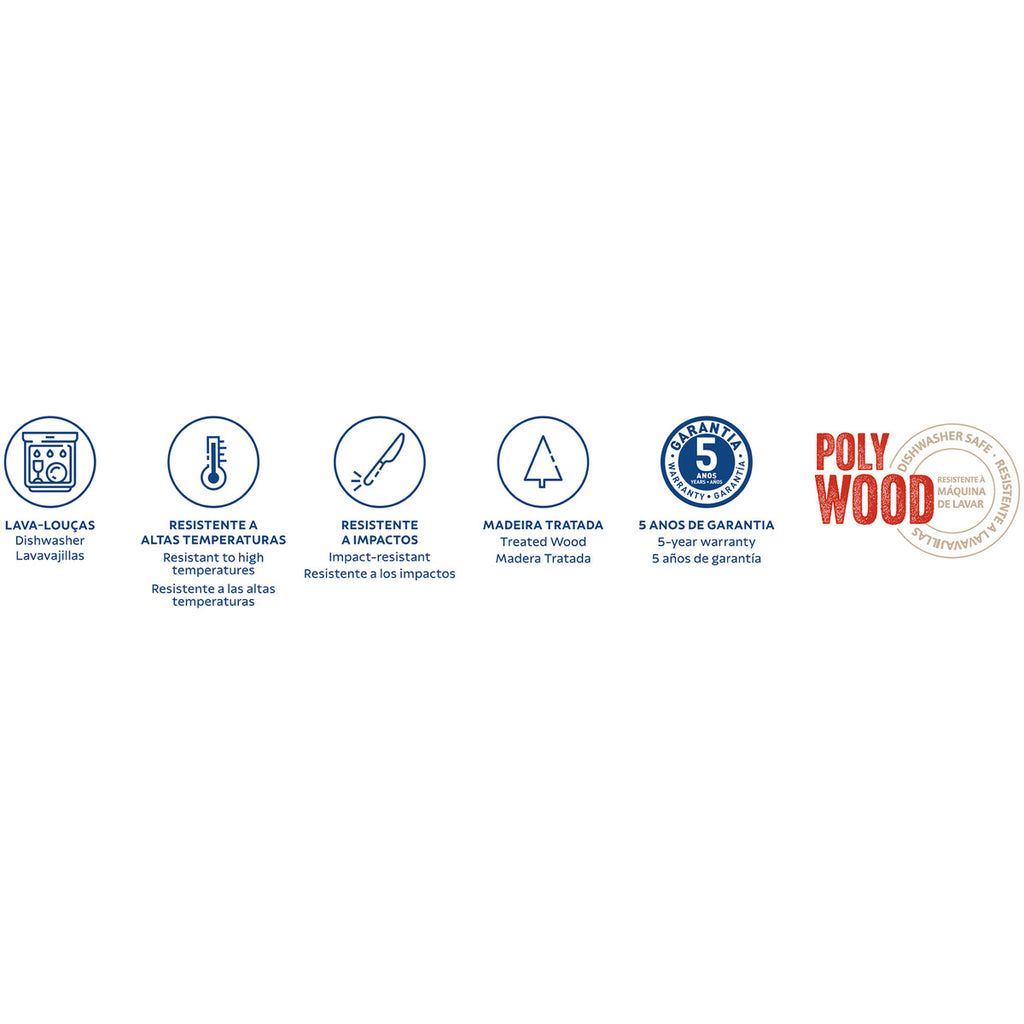 El afilador posee un eje de acero carbono revestida de cromo duro que garantiza una mayor durabilidad y precisión en el afilado. Los mangos de madera tratada Polywood son resistentes a impactos y altas temperaturas, lo que garantiza mayor resistencia y durabilidad. Remaches de aluminio.