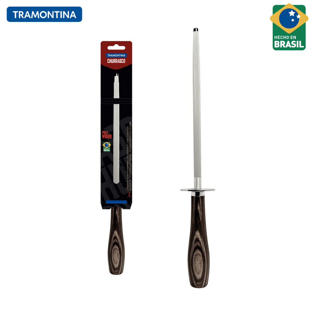 Con la Chaira Tramontina de Acero al Carbono Cromado y Mango Castaño Polywood, tus cuchillos estarán siempre afilados para todas las ocasiones. Nada de pasar vergüenza con aquel cuchillo que no corta. El alma de la chaira se fabrica en acero al carbono cromado, material que garantizará un afilado de calidad. Su mango de madera tratada Polywood trae más belleza a la pieza, que puede acompañarte en todos los asados. Con los productos de la línea Churrasco en manos, tendrás la garantía de lucirte en todos los momentos.