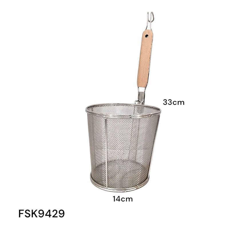 Colador Hondo de Acero Inoxidable con Mango de Madera 14x33cm FSK9429