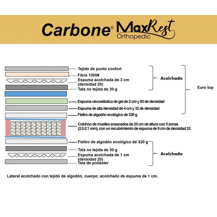 -Relleno: espuma viscoelástica de 50D de 2 cm + espuma 32D de 4 cm.