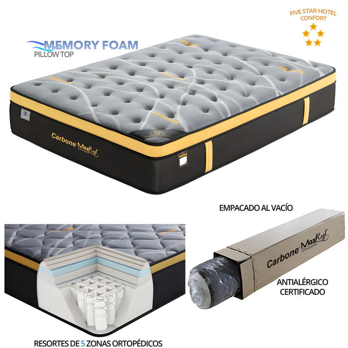 Colchones Empacados al Vacío Pillow Top Memory Foam con resortes. Colchón Ortopédico 30 cm de espesor. Calidad Hotelera 5 Estrellas.