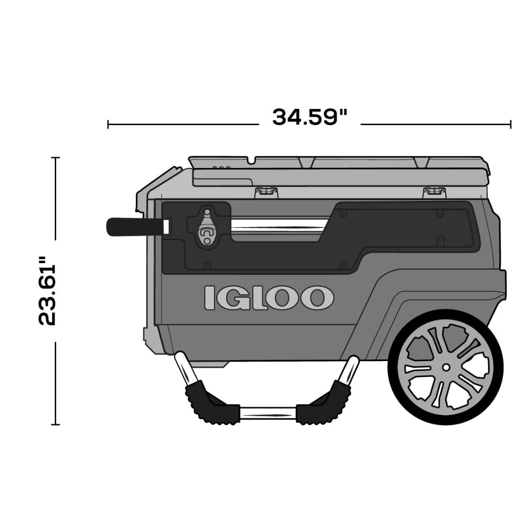 Our rugged Trailmate cooler has oversized, all-terrain wheels and a sturdy telescoping handle, so you can easily and smoothly roll it to your destination.