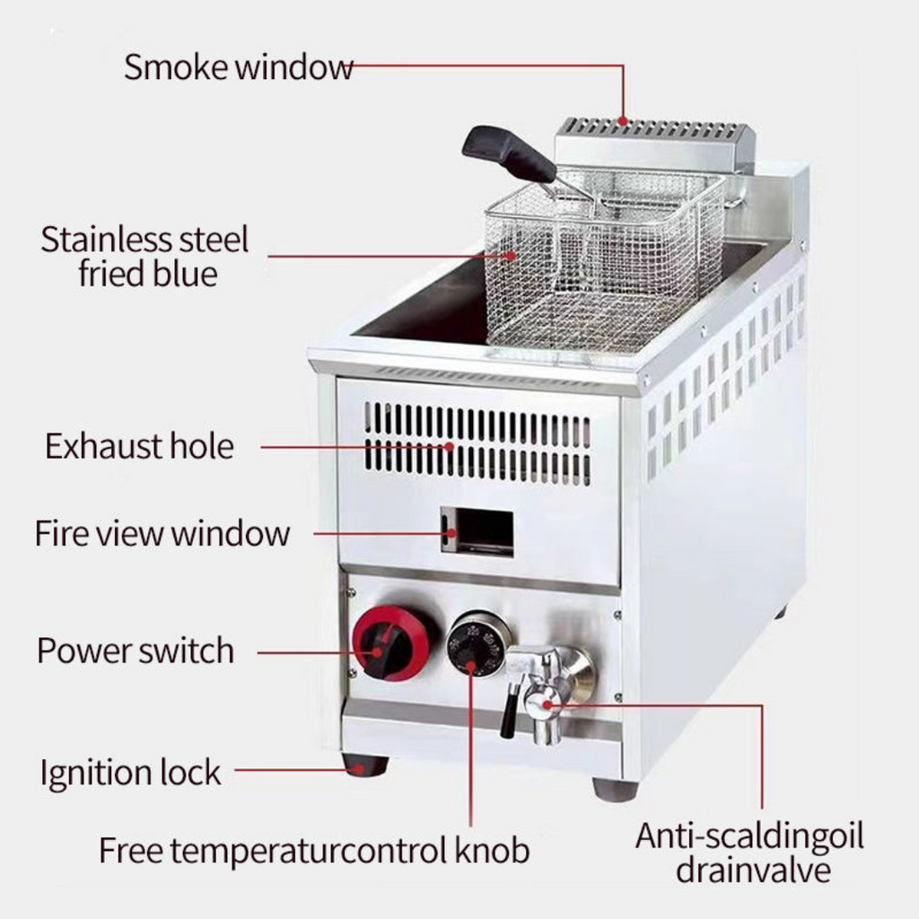 Freidora de Acero Inoxidable a Gas de 8 Litros con Termostato HGF-71A