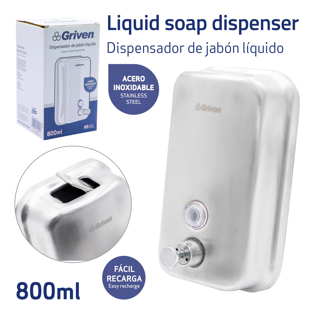 Dispensador de Jabón Liquido en Acero Inoxidable 800ml Griven GV-SD-SS
