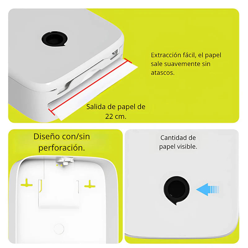 - Diseño moderno y minimalista, con ventana frontal que muestra la cantidad de papel disponible.