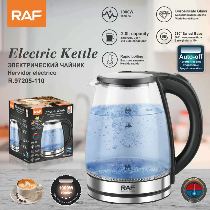 - Capacidad de 2.0 litros, ideal para preparar té, café, infusiones o agua caliente en pocos minutos.