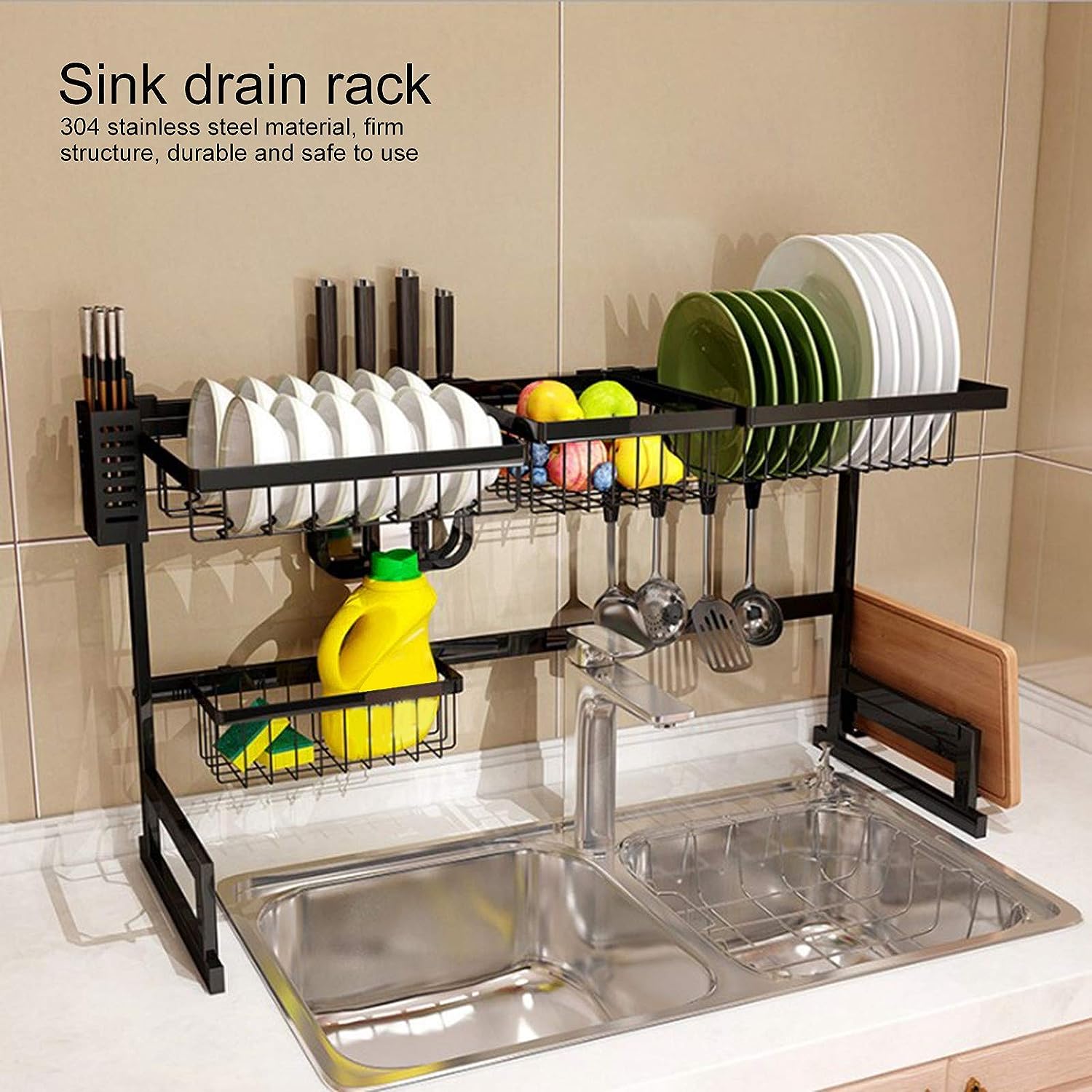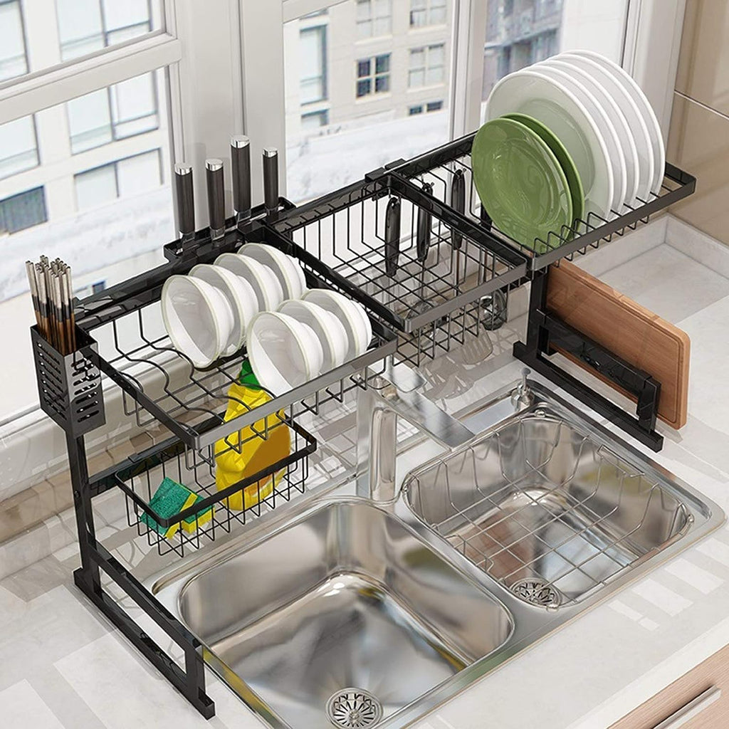 Escurridor Metal de Platos Sobre Fregador Color Negro 46x85x26cm KC-31099