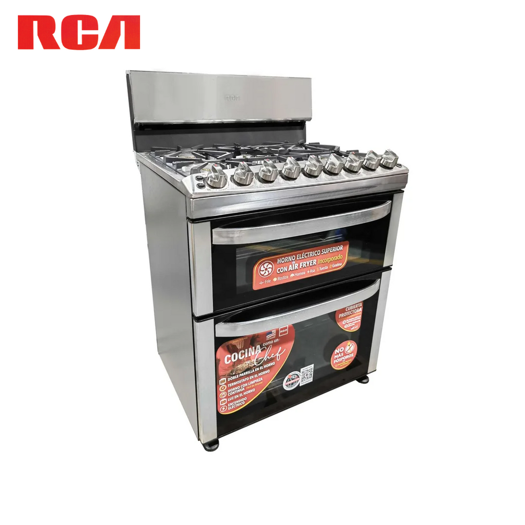 Estufa con Horno a Gas y Freidora de Aire 30" 5 Quemadores Acero Inoxidable RCA RCCR7652