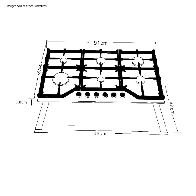 Estufa Empotrable a Gas de Acero Inoxidable 304 6 Quemadores Milán 91 Drija