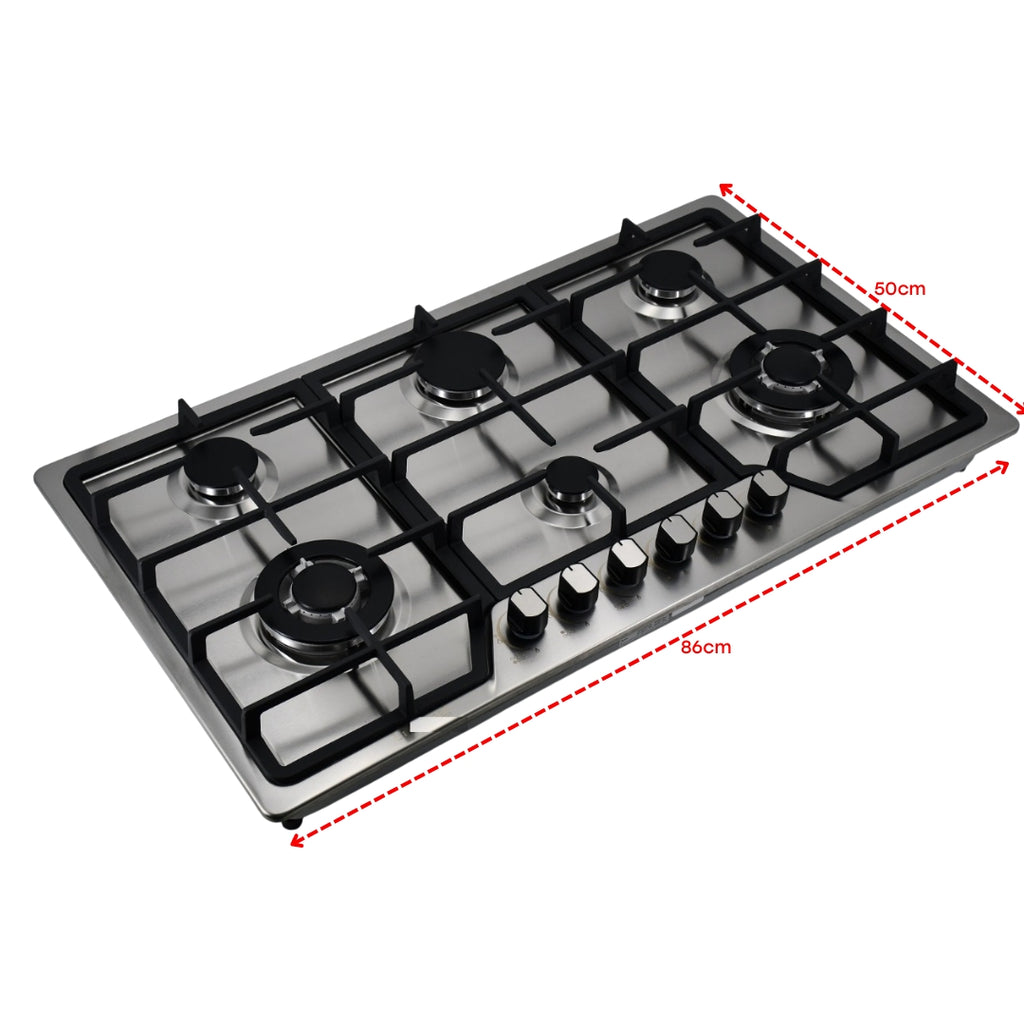 Estufa Empotrable de Acero Inoxidable 6 Quemadores Parrilla de Hierro Colado IML QE-6A