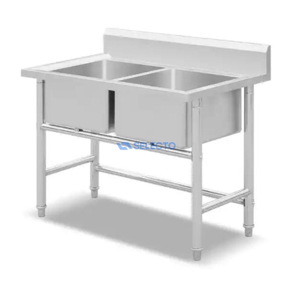 Fregador Industrial de Doble Tina de Acero Inoxidable 201 1100*620*800mm Calibre de 150mm 01803
