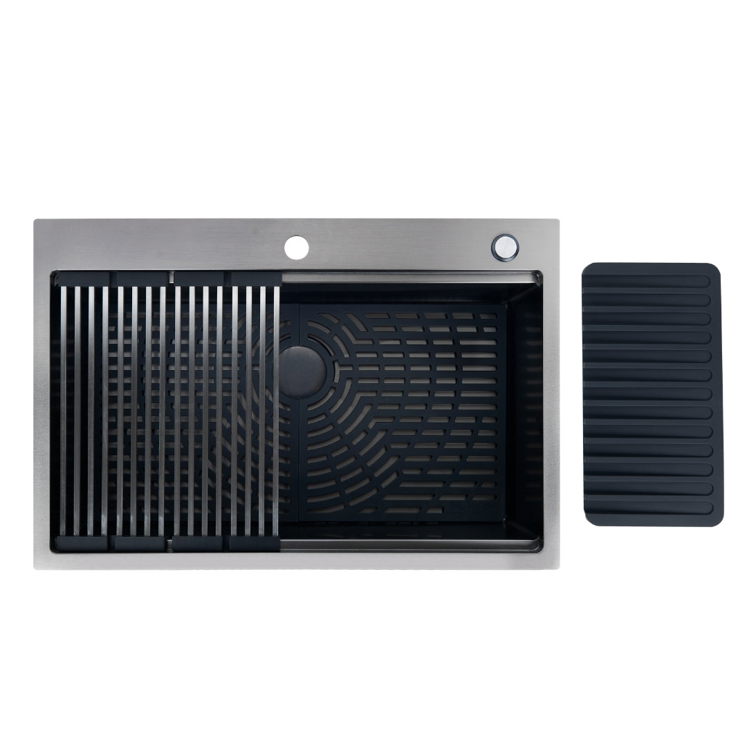 | Instalación y Material | 1.2 mm de espesor en tina y 3.0 mm en la tabla Acabado en acero Fácil de limpiar Hecho a mano por artesanos. Sistema de amortiguación de ruido. |
