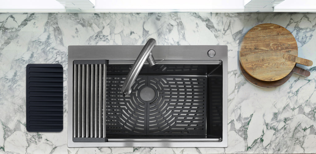 | Incluido | Sistema Drenaje Tubería Plástico Anti Ruido Sistema antirreboso Kit de Instalación Escurridor multiusos Rejilla de silicon inferior Plantilla de recorte |