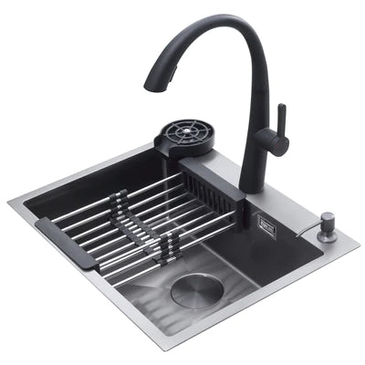 Añade elegancia y funcionalidad con nuestros fregaderos de acero inoxidable. Disponibles en diversos modelos, estos fregaderos incluyen un dispensador de jabón, grifo de alta calidad, enjuagador de vasos, cesta extraíble para utensilios y un tubo de desagüe, ofreciendo una solución completa para tu cocina.