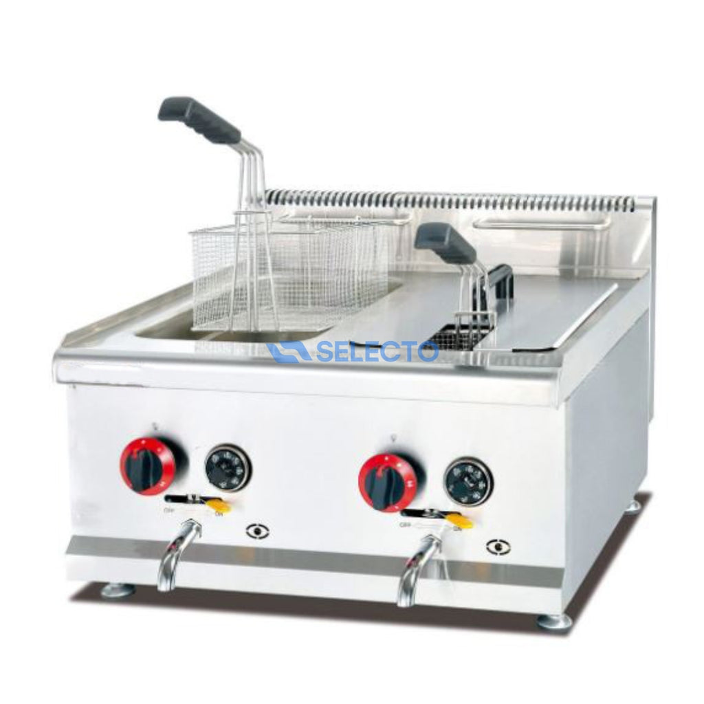 Freidora de Acero Inoxidable a Gas con Doble Cesta 8L+8L con Termostato HGF-72A