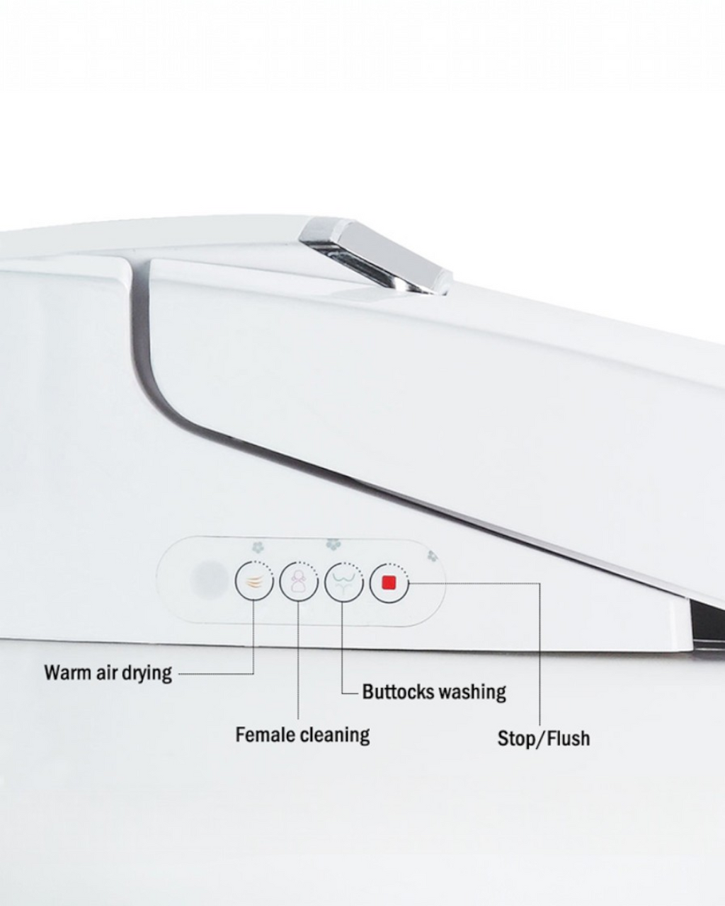 Este inodoro inteligente versión estándar 201A, con dimensiones 650 x 420 x 555 mm y descarga de 300 mm, combina funcionalidad avanzada y diseño práctico. Su sistema optimiza el uso del agua, ofreciendo eficiencia y confort. Ideal para instalaciones modernas que buscan un equilibrio entre tecnología y durabilidad.