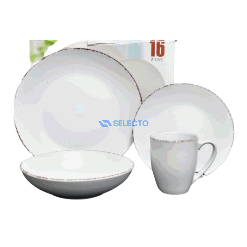 Juego de 16 Piezas de Vajillas de Porcelana Blanco ST-3804