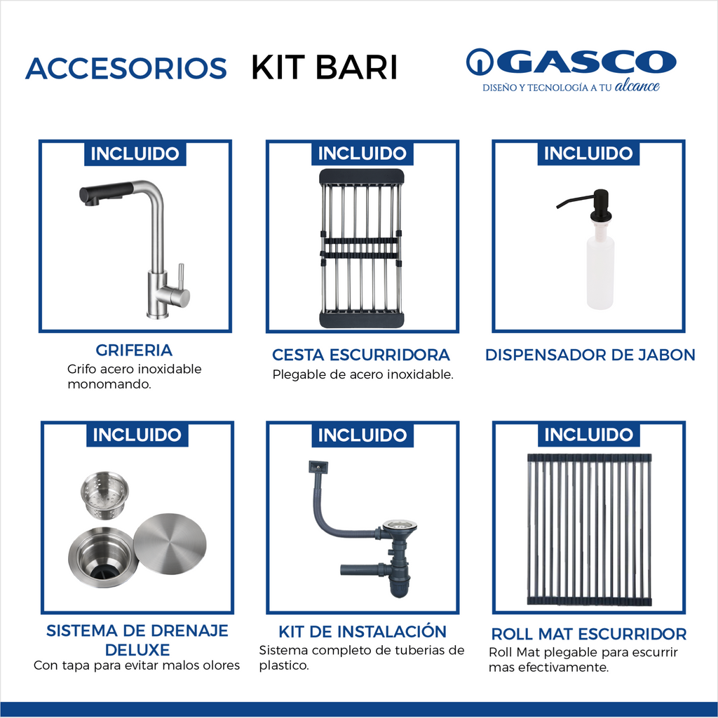 | Instalación y Material | Acero inoxidable 201 Sobre/Bajo Tope Empotrado |