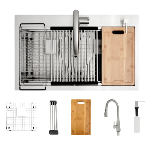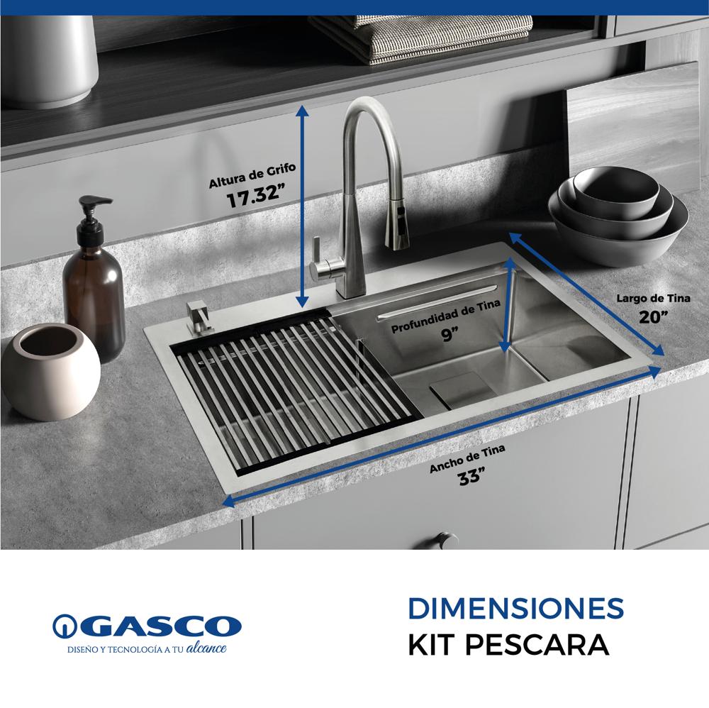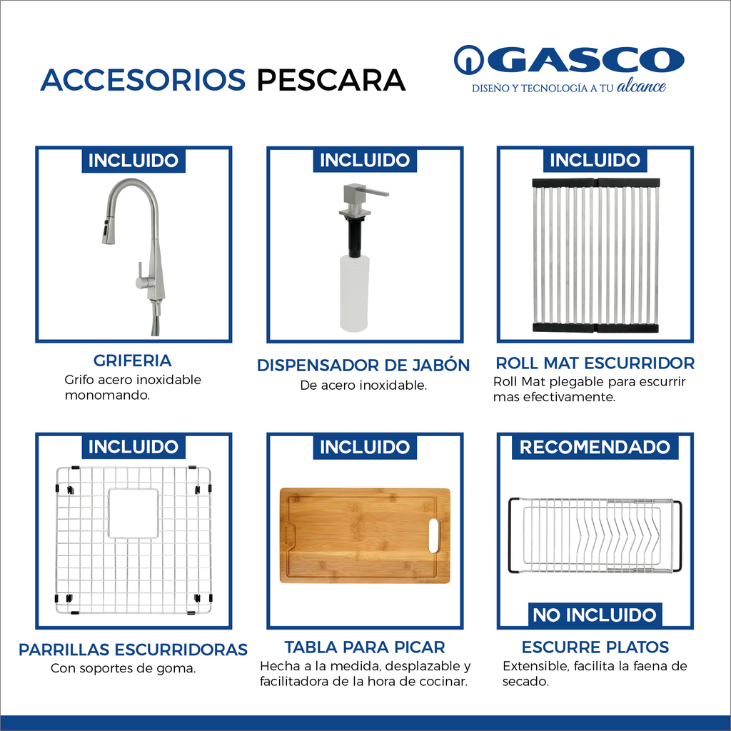 | Material y Acabado | Fregadero compuesto por acero inoxidable 304 de alta calidad, fácil limpieza y mantenimiento. |