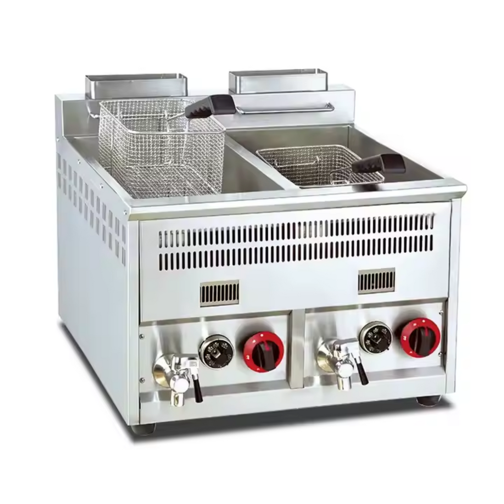 Freidora a Gas 8+8L con Drenaje & Termostato 610*660*550mm HGF-72B