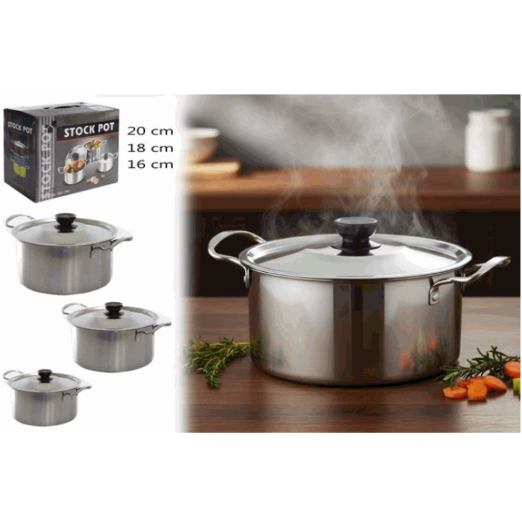 (LLEGANDO 16 DE ENERO) Juego de 3 Piezas de Olla con Tapa de Acero Inoxidable 16cm / 18cm / 20cm 87880