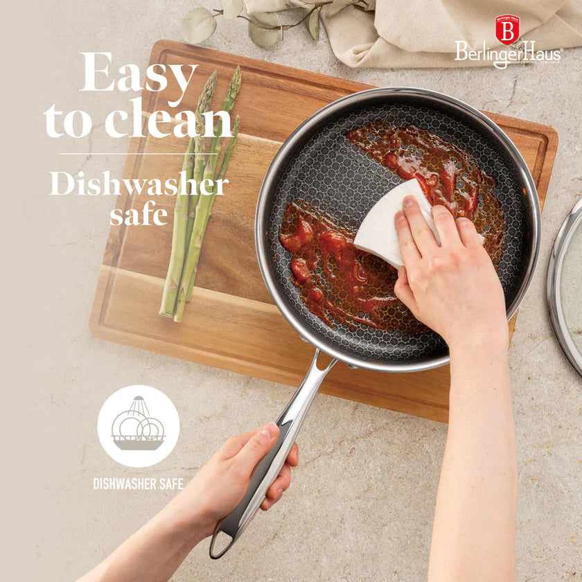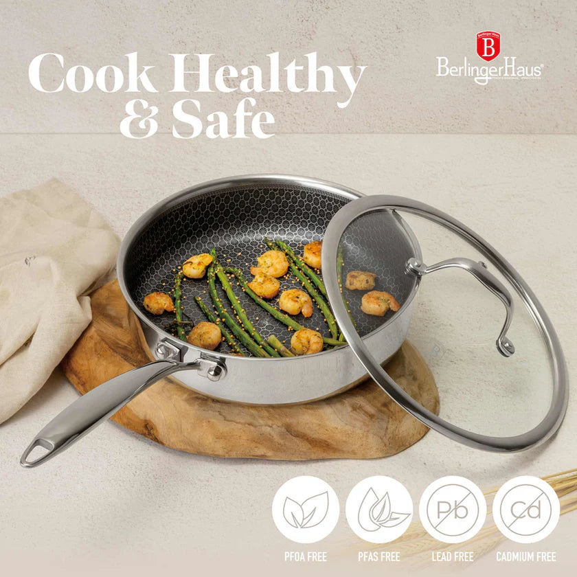 (LLEGANDO 16 DE ENERO) Sartén Hondo de Acero Inoxidable con Tapa de Vidrio 24cm Berlinger Haus