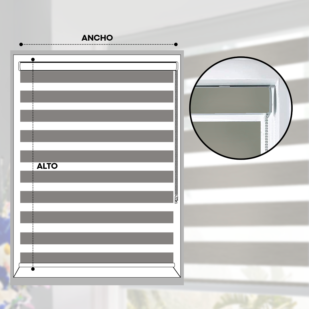 La cortina roller zebra es un tipo de cortina enrollable que combina la funcionalidad de una persiana con la elegancia de una cortina tradicional. Está compuesta por dos capas de tela, una opaca y otra translúcida, que se alternan para crear un efecto de franjas horizontales.