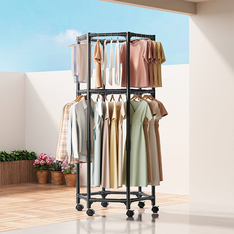 (LLEGANDO 27 DE MARZO) Perchero Tendedero de Ropa Multifuncional Moderno Negro con Rueditas 175x70x36cm FSK10947