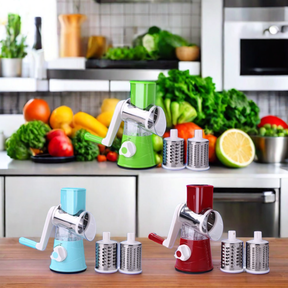 (LLEGANDO 27 DE MARZO) Rallador Manual Giratorio Con 3 Cuchillas Intercambiables Para Cocina. Rebanador Cortador Para Verduras, Frutas Y Más. Rallador Queso. Mandolina. KC10874