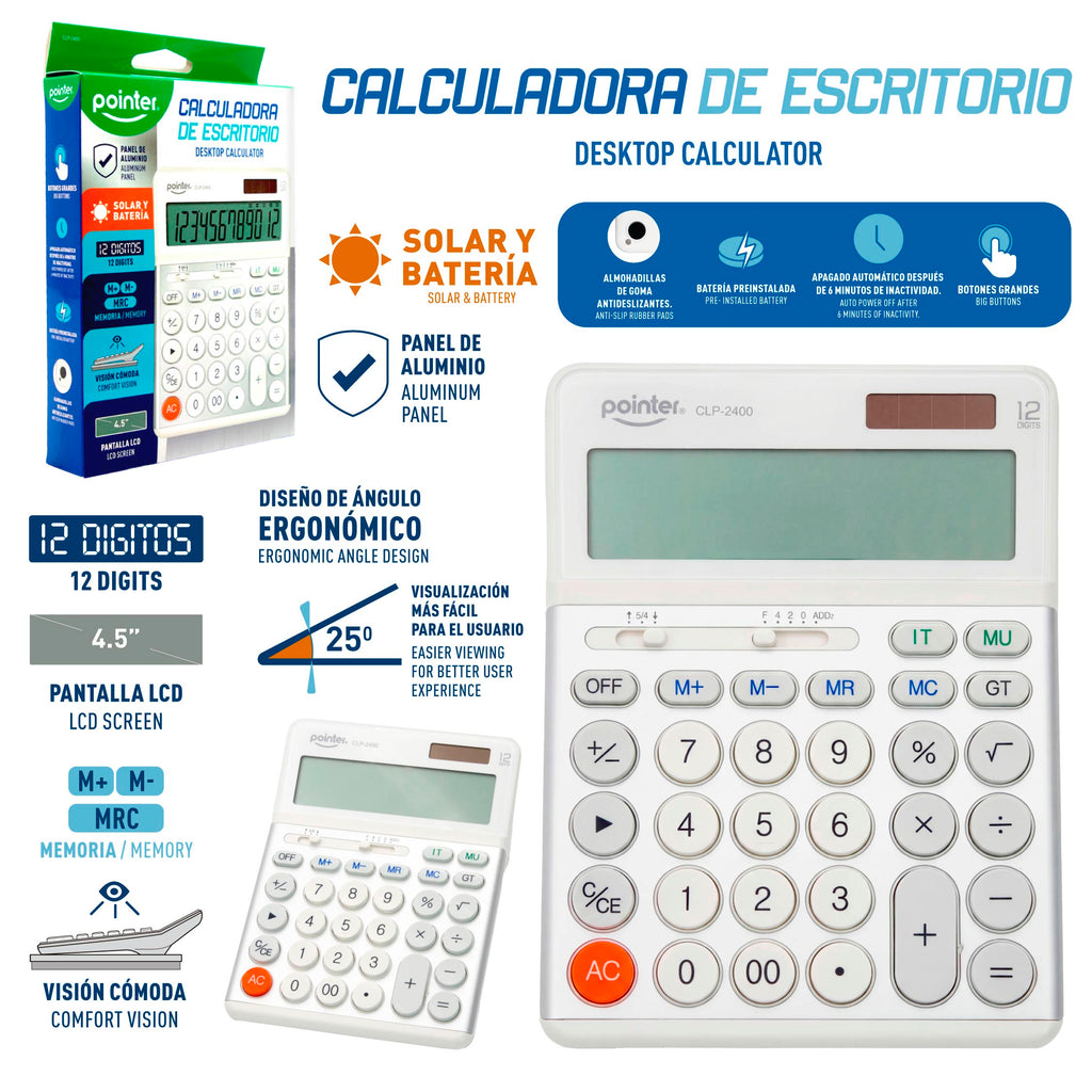 (LLEGANDO 5 DE MAYO) Calculadora Sumadora 12 Dígitos Solar y Batería Pointer CLP-2400