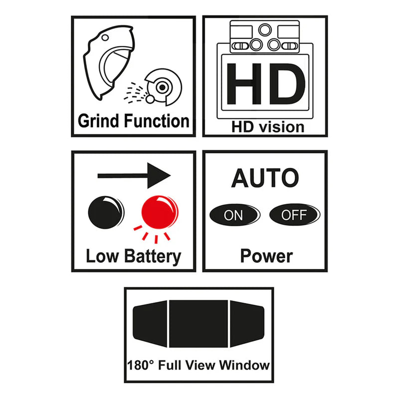Mascara para soldar electrónica de nilón con área de visión 100×67mm. DIN3, Encendido Automático, Protección UV/IR DIN16. Auto recargable gracias a su celda solar. Presentación caja color.