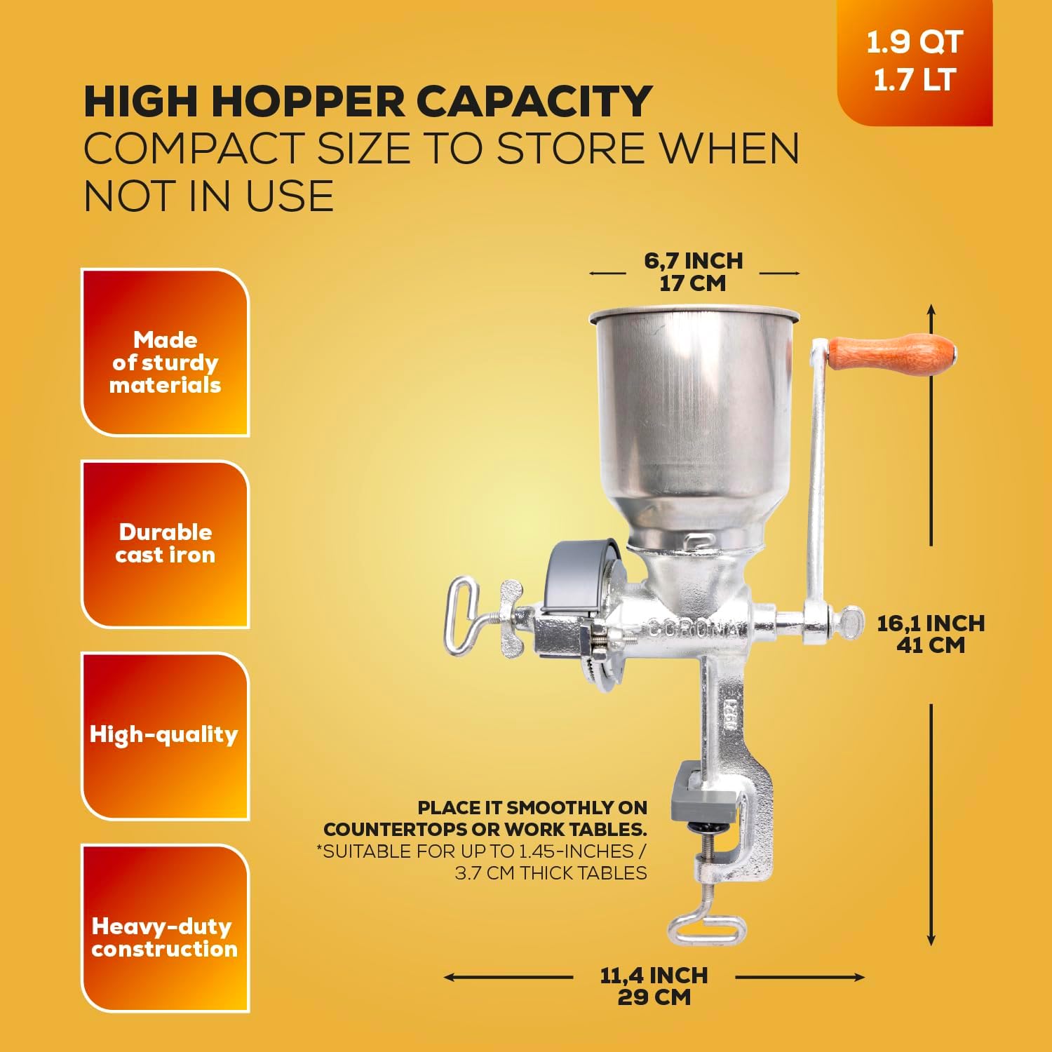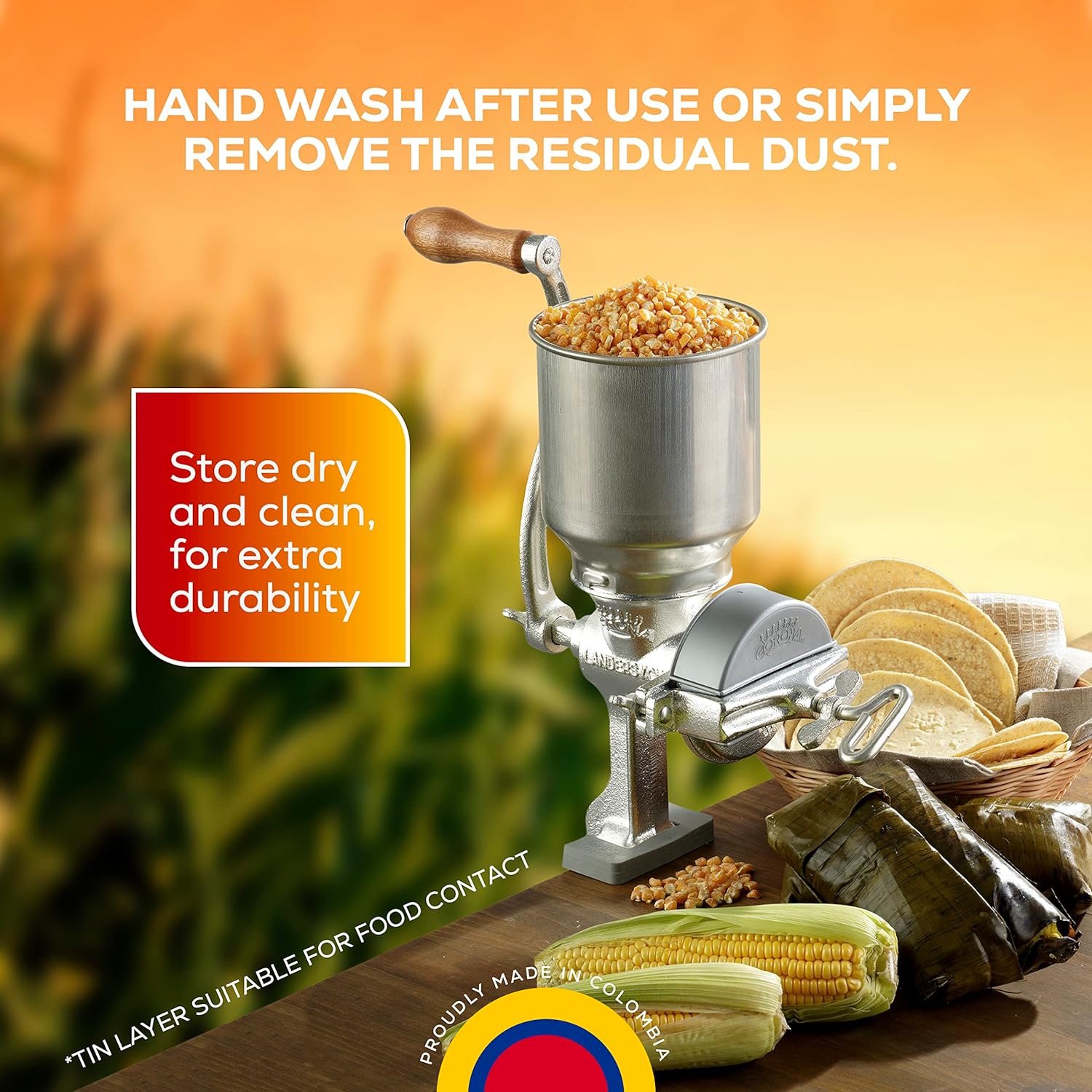 Molino de Maíz de Hierro Fundido con Tolva Alta Corona