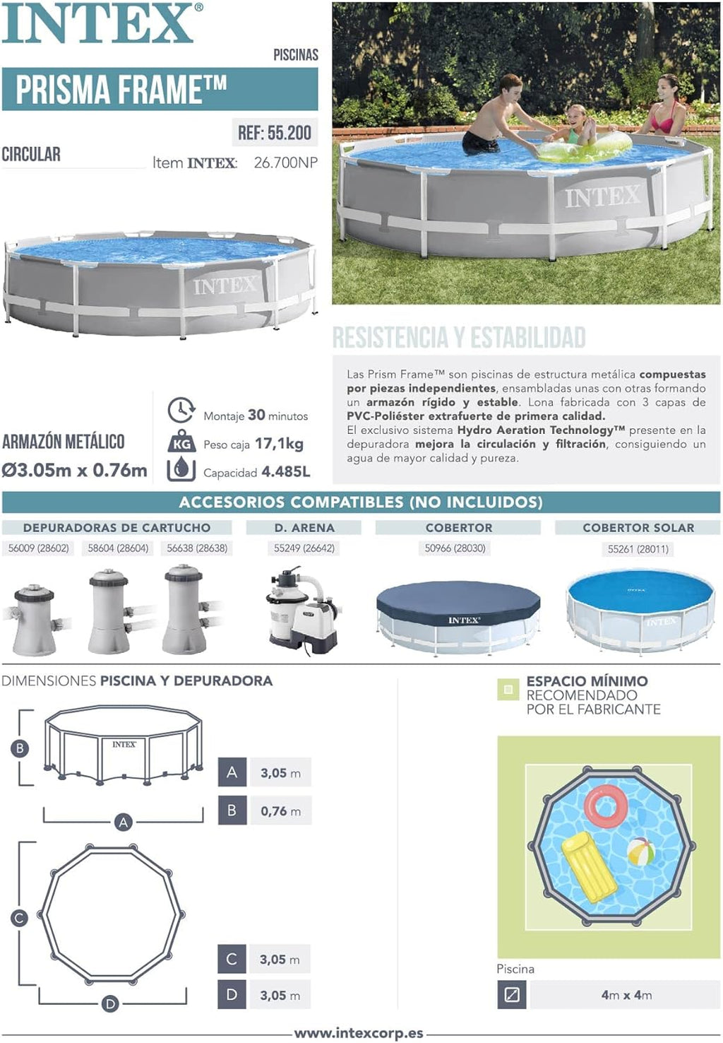 Piscina Elevada Redonda 10pies x 30plg Prisma Frame Intex 26700NP
