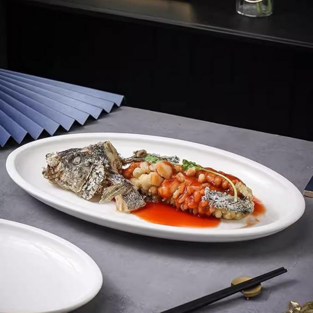 Plato Ovalado Hondo de Melamina Blanca 14" BG-OP357-14WH45