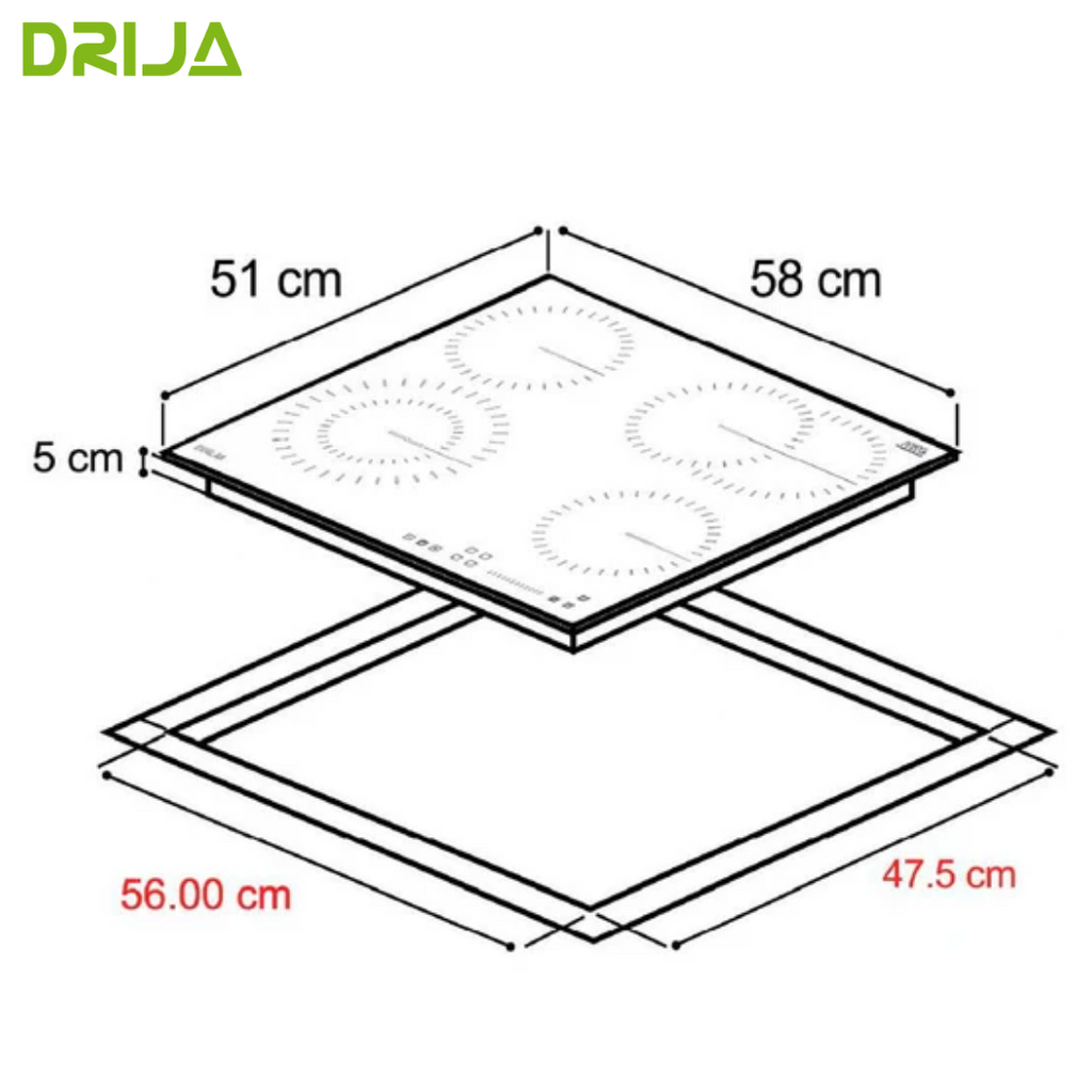 (POR PEDIDO) Estufa Empotrable de 4 Quemadores Vitrocerámica Negro BERLIN 60 ELÉCTRICO DRIJA