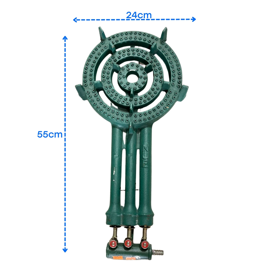 Quemador de Hierro de 3 Llaves a Gas Verde Reverbero. Estufa.